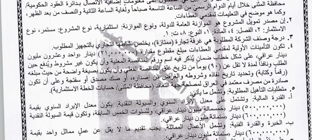 اعلان مشروع تجهيز اليات تخصصية لمراكز الدفاع المدني في (السوير-الدراجي-المجد-الهلال-النجمي)